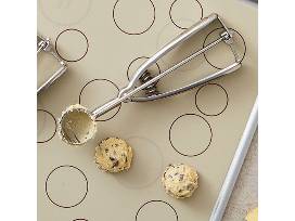 SMALL SCOOP - This heavy-duty stainless steel scoop is great for evenly portioning batters, doughs, fillings, and salads. Squeeze-action handles allow for convenient one-handed use. Approximately 1 tbsp. Dishwasher-safe.