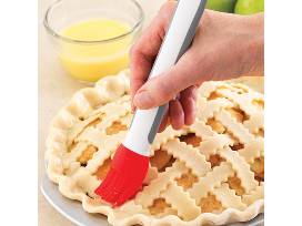 CHEF'S SILICONE BASTING BRUSH - Neatly brush sauces, melted butter, oil and egg onto foods and pastries. The handle features a hanging hook to keep messes in the bowl. Stain and odor-resistant. Heat-resistant to 500°F. 8½". Dishwasher-safe.