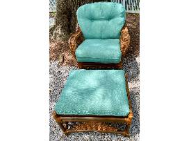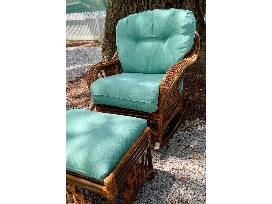 PRICE ADJUSTMENT! Relax in comfort and style with this beautiful rocking chair and matching ottoman set. Sturdy, in pristine condition, and oh so versatile. It will be lovely in a bedroom or nursery, on a sun porch, or cozied up close to the fire place this winter with a good mystery novel and a cup of tea.