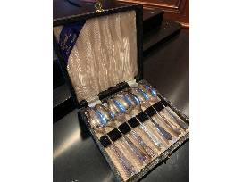 PRICE ADJUSTMENT! This boxed set of six Sheffield grapefruit spoons and accompanying sugar shell is exquisite. Polish them up, put a bow around them and voila- an instant engagement or wedding gift or something special from Santa.