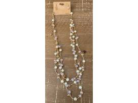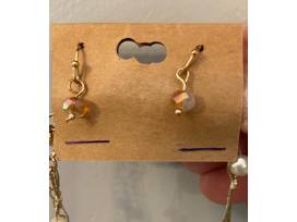 Very pretty multi layer gold-tone necklace with pearls & gemstone beads with matching drop earrings.