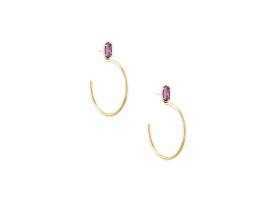 Hoops: you love them, we love them, everyone loves them. This season, we took one of your favorite hoop earrings and added a stone accent. Wear your favorite style in your favorite color with the Small Pepper Gold Hoop Earrings in Purple Mica.