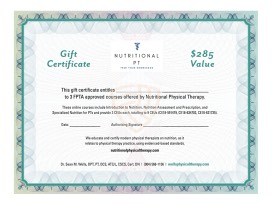 Nutritional Physical Therapy will educate and certify modern physical therapists on nutrition, as it relates to physical therapy practice, using evidenced-based standards. Nutritional Physical Therapy embraces a holistic patient view, evidenced based standards, and is destined to change physical therapy practice to integrate wellness into the traditional therapy setting.