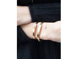 A chic set of gold, silver, and rose gold bracelets by Maison Miru.