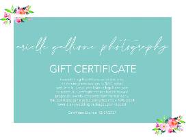 A gift card for a 45 minute private photo session with Arielle Gallone.