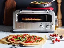 Think about it - you could have a wood-fired pizza at your fingertips in under 2 minutes (in the comfort of your own home!) with this Breville countertop pizza oven. The oven also comes with a cutting board, a pizza-themed dish towel, King Arthur brand pizza dough flour, and a container of gourmet pizza sauce.