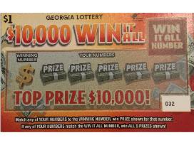 Today could be the day! Have a little fun with these fifty (50) $1 scratch off Georgia Lottery tickets. The game is called $10,000 WIN IT ALL.