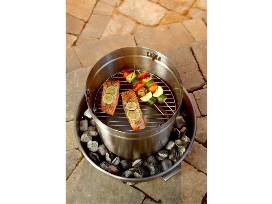 As an all-in-one convection cooker and meat smoker, the Orion Cooker is the outdoor charcoal grill for master grillers, occasional cooks, and all who love succulent, flavorful meat without a long wait or major effort! The indirect convection cooking process drastically reduces cooking time. The Orion can smoke a whole 12 lb turkey in 1.5 hours! Also includes are a can of dry rub, insulated BBQ gloves, 2 packages smoker chips, and a cover.