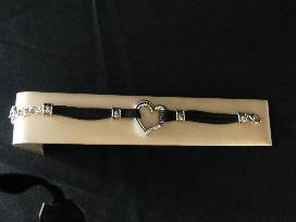 Brighton bracelet designed with Sterling Silver Clasps around Black Ropes connected with Sterling Silver Embellished Heart in the middle and Small Sterling Silver Heart Charms on the Clasp.
