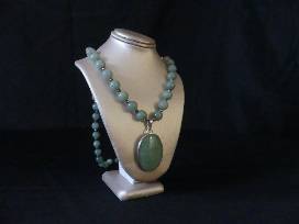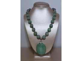 Composed of Jade Beads and Handcrafted Jade Pendant and Sterling Silver Necklace.