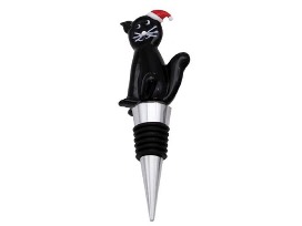 2 Wine Bottle Stoppers: Black Dog and Cat wearing Santa hats.