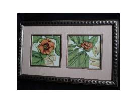 Two blooms 16 x 28 prints each measure about 19-3/4" w x 32" tall with frames.