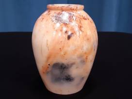 Add some decoration to your living space with this one of a kind clay vase. Measures 6 1/2 inches tall and approximately 5 inches wide. Makes a great accent piece.