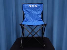 Blue Rahr & Sons folding chair with black trim.31.5 " tall