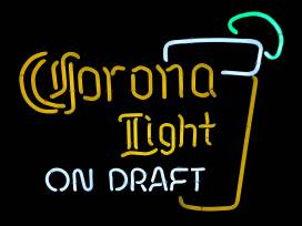 Corona Light LED sign with draft beer accent design. Pull chain 22" h by 27" w