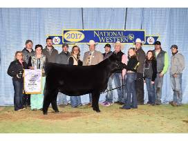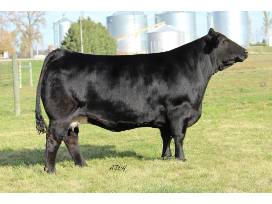 Get ready to show and go with this knockout from our winning 'Wishes" donor! This heifer sets you back with her clean lines, large bone, great hair, and powerful volume and body shape. Her dam was a huge winner for us - division titles in Louisville and Denver - and her second dam is the great Stop and Stare U118L that is a featured donor in this offering. Lots of wins in this pedigree! Great disposition!