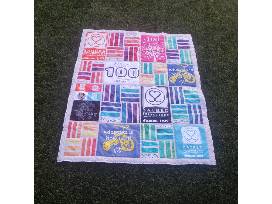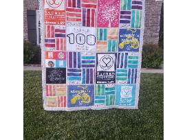 This bright and colorful quilt is simply stunning! The detail work on it is amazing and it has all of the Sacred Selections shirts used as well! We feel very lucky to have this in our auction!