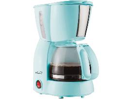 4-cup coffee maker with glass carafe and reusable filter (or use your favorite!). 2 hour automatic shut-off.