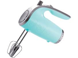 Ergonomic design, lightweight 5-speed hand mixer. Easy-to-use speed control and one-hand beater ejection.