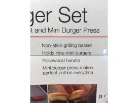 Sliders anyone? This Mini Burger Set (basket and press) makes appetizer or small portion burgers a piece of cake! The nonstick grilling basket holds 9 burgers and has a rosewood handle for easy use.