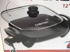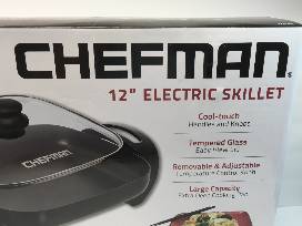 With Chefman's RJ05 12-In. Electric Skillet you'll make healthy, home-cooked meals and entertain in savvy style. This units non-stick cooking surface helps ensure effortless food release without the need for excess butter or oil. Deep side walls keep ingredients neatly contained, while the clear-view tempered-glass lid seals in heat, moisture, and nutrients. Temperature settings are noted on the dial of the side-mounted, removable temperature probe for quick, easy reference. Best of all, the temperature probe can be removed, which allows the electric skillet to double as an attractive serving piece. The stay-cool side handles provide a steady secure grip, making it easy to transport from the kitchen to the serving area and back again.