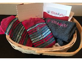 Namaste. You will be feeling the Zen with this colorful basket from Yoga 4 U Basket. Included is a $100 gift card that can be used towards any class (yoga, fitness, aerial yoga, meditation), retreats or retail items. Also included are a soft gray Yoga 4 You tshirt (size adult small) and grippy Gaiam yoga socks.