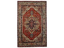 Heriz rugs are Persian rugs from the area of Heris, East Azerbaijan in northwest Iran, northeast of Tabriz. Such rugs are produced in the village of the same name in the slopes of Mount Sabalan. Heriz rugs are durable and hard-wearing and they can last for generations. 19th century examples of such carpets are often found on sale by major auction houses in United States and Europe. Part of the reason for the toughness of Heriz rug is that Mount Sabalan sits on a major deposit of copper. Traces of copper in the drinking water of sheep produces high quality wool that is far more resilient than wool from other areas.