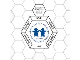 The 12" Center Tile will have the school logo and it's five core values, Love, Beauty, Spirituality, Community and Respect.