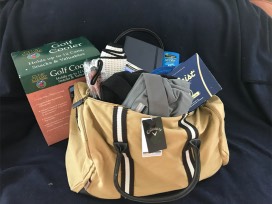 This golf package includes foursome to the St. Elizabeth School Golf Outing, a golf duffle bag filled with 3 Calloway Golf shirts, 12 sleeves of golf balls, leather golf score card , beach towel, and golf towel.