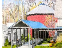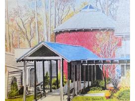 23Painting by Art Teacher, Mo Bennett, depicting the front of South Campus with the iconic red building that houses our main lobby printed on pearl white linen paper.