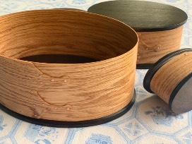 "Mike Mackenty and his family have been on Martha's Vineyard for a while. Somewhere in between college, graduate school, a successful career in healthcare technology and raising a family Mike also found time to become one of the island's skilled craftsman. These Shaker boxes that Mike made especially for our auction is a great example of his prowess. These mahogany and oak boxes are truly one of a kind pieces, created in his workshop on Edgartown Great Pond.