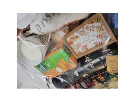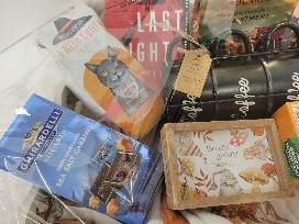 Get warm & cozy with this fabulous Fall bundle. Enjoy a nice cup of coffee with some light reading & assorted Ghirardelli chocolates. Complete with salted caramel latte candle, Fall kitchen towels, on a beautiful wooden table tray.