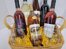 Taste of our local wineries!! Bottles from Wild Sun, LaChance & Villa Antonio. 2 Wild Sun glasses & a gift certificate for Villa Antonio Winery!!