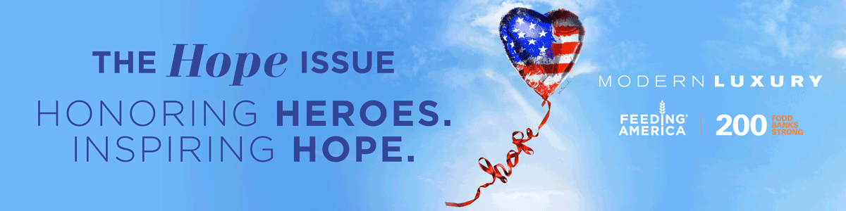 For Modern Luxury's special edition, The Hope Issue, Mr. Brainwash created an original work of art, titled "Hold On To Hope." "I wanted to do a balloon representing America all together," he shares of his inspiration for the work. "It's love; it's the heart-the whole [country] together, and we're not going to give up. We are going to make it happen, and we are going to fight for it. We are going to win because we have hope."