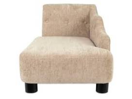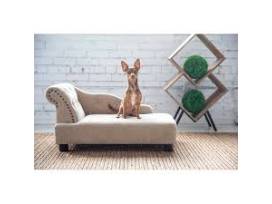 Pamper your pup (or feline) with a La-Z-Boy Lakewood Lounger for pets. This chaise-styled lounger is crafted with furniture-grade materials including a solid wood base and feet and covered in La-Z-Boy's exclusive human-grade upholstery, a beige textured chenille fabric that conceals pet fur and wear and tear. The La-Z-Boy Lakewood Lounger is great for pets that tend to sprawl out during sleep but still like the option of having bolster support for their head or neck. The tufted design on the bolster and nailhead detailing fit today's trends in human furniture and adds a touch of class to your home. Sitting a few inches off the ground, pets can easily hop onto the lounger and are protected from hot or cold floors while they rest. Ideal for medium breed dogs up to 50 lbs. La-Z-Boy trademarks are used under license by Petmate. Dimensions: 34" L x 18" W x 17" H Maximum pet weight 75 lbs