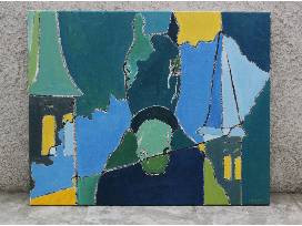 A gorgeous original contemporary oil painting on canvas of a horse at dusk at Churchill Downs by artist Gregory Alan Martin. The pleasing blues, yellows and greens will be admired by you and your guests. And did you spot the outline of Kentucky?