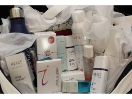 This lux skincare basket courtesy of Aesthetic Alternatives has everything you need to pamper your skin, including Obagi Professional-C Polish and Mask, Obagi Hydrate, Colorscience Color Balm SPF 50 in Bronze, Colorscience Brush-on Sheild SPF 50, Avene Intense Eye Makeup Remover, NeoCutis Cleanser, SkinCeuticals Hydrating B5 Gel, Elta MD UV Lotion SPD 30, and Jane Iredale Lux Lipstick, Eye Shadow and Magnetic Brush.