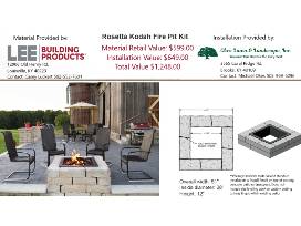Rosetta Woodburning Outdoor Fire pit in Limestone color package includes Kodah square fire pit kit, all stone base material, inside fill material, and decorative lava rock topdressing. Standard installation by Okes Lawn & Landscape includes delivery of all material and labor to build fire pit on top of existing level grade patio or lawn area. Delivery/installation must be within 25 miles of Louisville metro area.