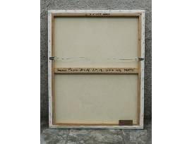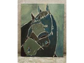 This contemplative painting by Gregory Martin is a meditation on American Pharoah, as a foal looking toward his storied future and as a Derby winner looking back at his younger self. The color pallet is a range of quiet blues and grays.