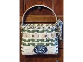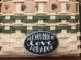 A beautiful 12"x10" handwoven wall basket by Lorelea Roberts of Louisville in ivory and sage, with the saying "all you need is love & a dog." A perfect basket for organizing your dog's leash and poop bags, or even the mail. Lorelea has been making baskets for over 20 years. She loves working with different materials and creating both useful and artistic weavings.