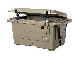 Tougher than an angry bear and proven to keep ice frozen for days, Cabela's Polar Cap Equalizer Cooler gives serious performance over the long haul. Featuring a maximum insulation-to-weight ratio, this 60-quart cooler's efficient, all-around foam insulation delivers great temperature control and ice retention without excessive weight. A freezer-grade gasket in the lid creates an airtight seal to help lock in cold temperatures even longer (holds ice up to 7 days). Incorporating molded padlock tabs into its rugged resin shell, this bear-resistant design allows you to securely lock contents inside the cooler. Barrel-shaped, rubberized T-handle latches ensure a tight, secure seal, and feature integrated bottle openers for convenience. Dimensions: 37"Lx19.5"Wx18.75"H. Wt: 30.1 lbs. Made in USA.