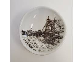 - One Eco Bag and one woodgrain dish, both containing an illustration of the Roebling Bridge from SKT Ceramics