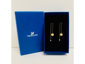The haute threader design of Swarovski's earrings puts an even chicer spin on the crystal-filled discs. Fashioned in rose gold-tone mixed metal, this highly wearable design is perfect for mixing and matching with other Swarovski jewelry pieces. Approximate drop: 1-7/8".