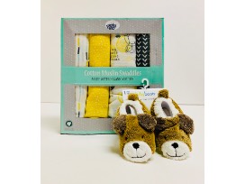 A perfect gift for any bundle of joy in your life or upcoming baby shower. Package includes adorable baby boots and organic cotton swaddles plus a $25 gift card to buybuybaby.com.