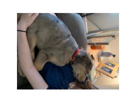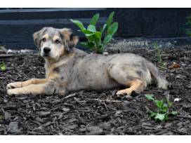 A beautiful, sweet hound mix came to us pregnant. She was lucky enough to have her babies in peace and quiet at a foster home. She was such a good mama and nursed her babies and was so attentive. Her name was Java Monster, and her ELEVEN babies were all named after coffee flavors. Salted Caramel was one of those little puppies. Although this litter appeared to have some Great Pyranese in them as well! All eleven are absolutely beautiful and are now adopted in their forever homes.