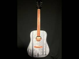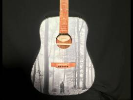 An Acoustic Epiphone DR-100 Guitar With Custom Folklore Album Cover Graphic, Featuring "Taylor Swift" Printed In The Center Front Of The Guitar. Guitar Comes With A Unique Serial Number Printed On The Back Of The Guitar Headstock To Identify This Collectible Product.