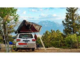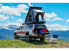 Three-night adventure vehicle rental with deluxe camping package. Winner gets choice of vehicle (Tacoma, 4Runner, or Sequoia), which comes with rooftop tent, awning, all the camping gear, and insurance.