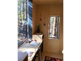 Sleeps two. Additional guests can be accommodated via tent outside the cabin or on the porch. Bring your own provisions. Small micro-fridge available (cooler outside for larger items). No indoor plumbing (bath facilities are a short walk away). Available most any time.