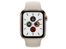 Apple Watch Series 5 - 44 mm, Gold stainless steel case with stone sport band.