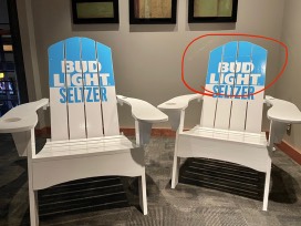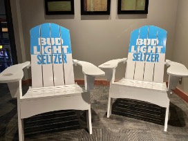 2 - Wood Adirondack Chairs with Bud Light Seltzer Logo.